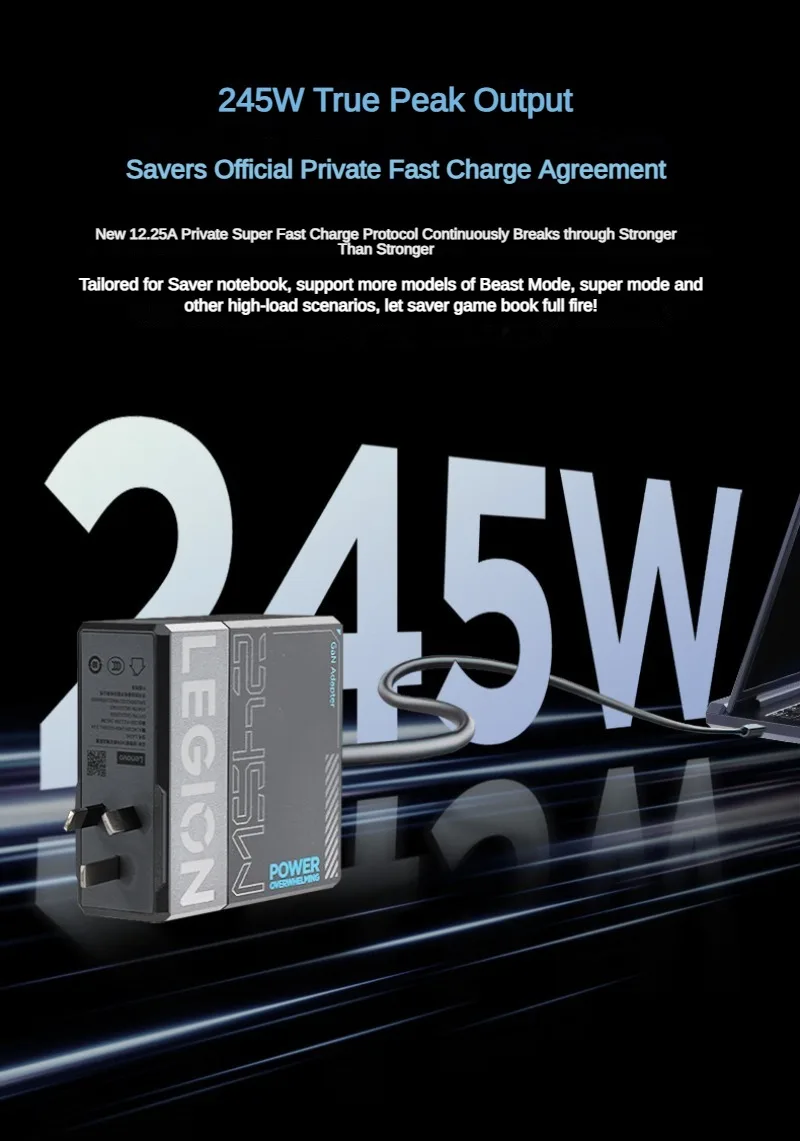 오리지널 레노버 리전 노트북 어댑터 245W 질화갈륨 충전기 다중 장치 호환성 소형 크기에도 불구하고 고출력