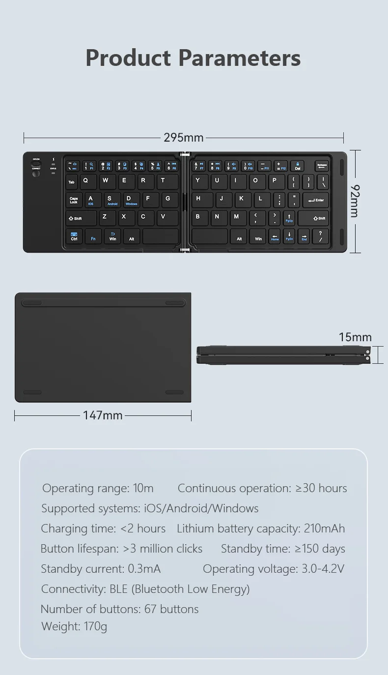 접이식 키보드|최상의 휴대성:200g의 초경량 무게로, 이 접이식 키보드는 주머니나 가방에 쏙 들어가며, 이동이 잦은 전문가들에게 이상적입니다.