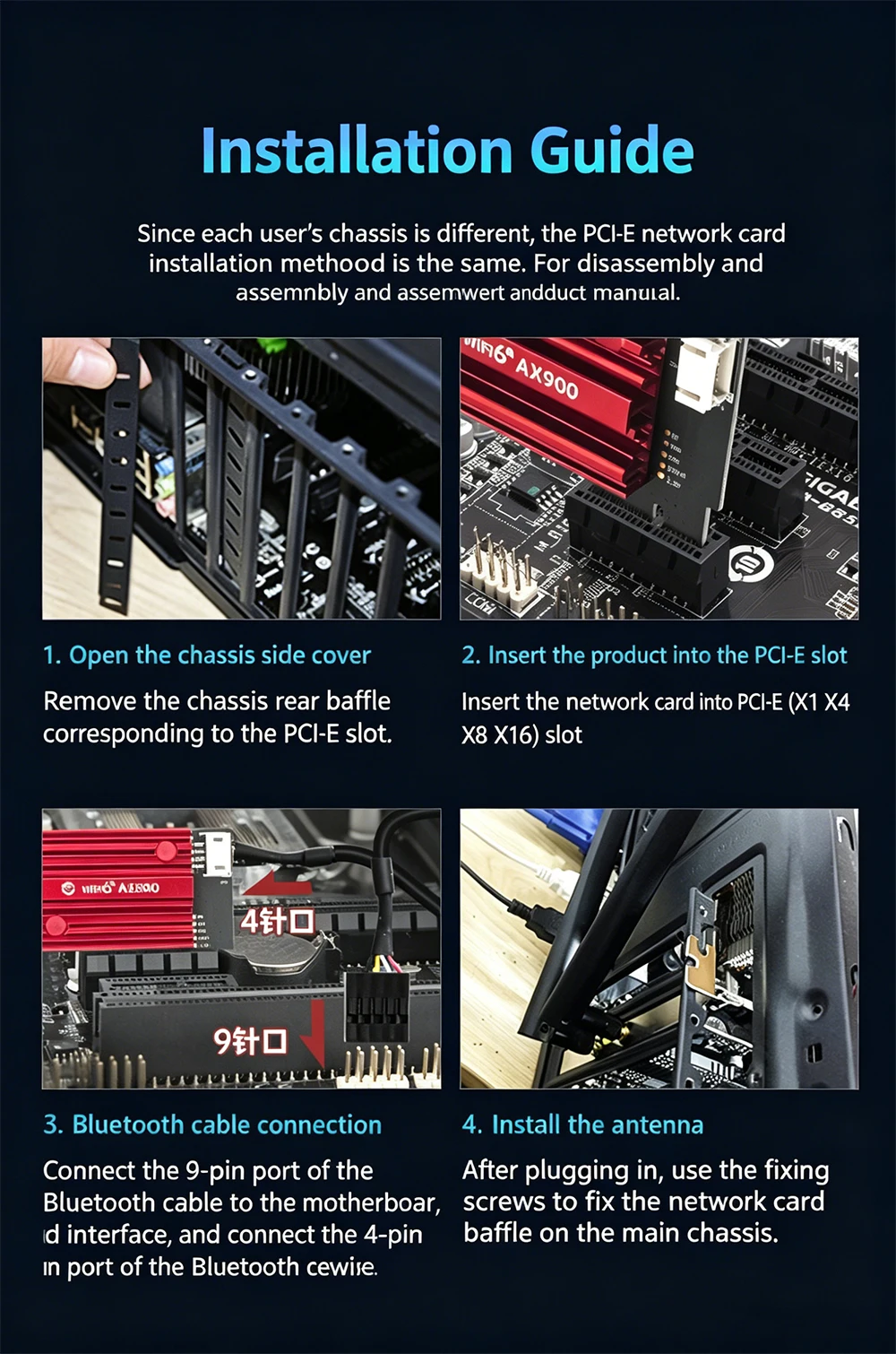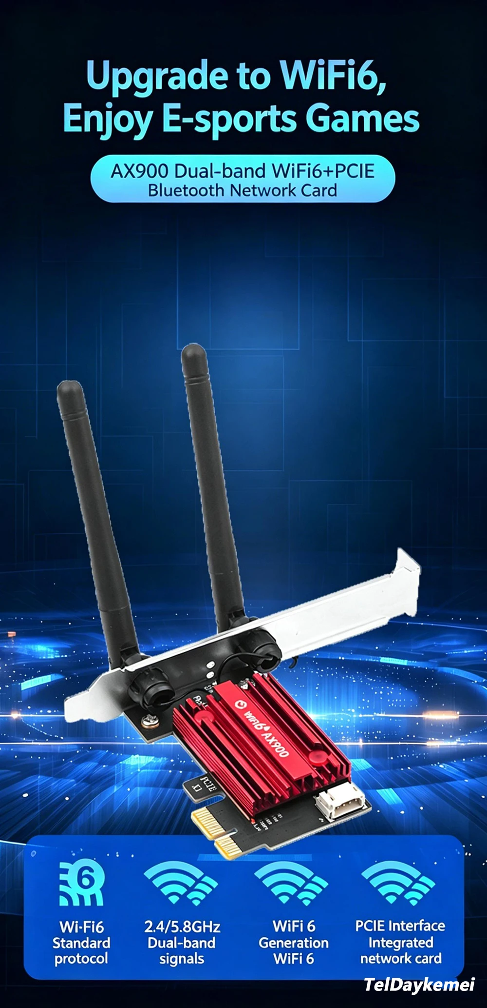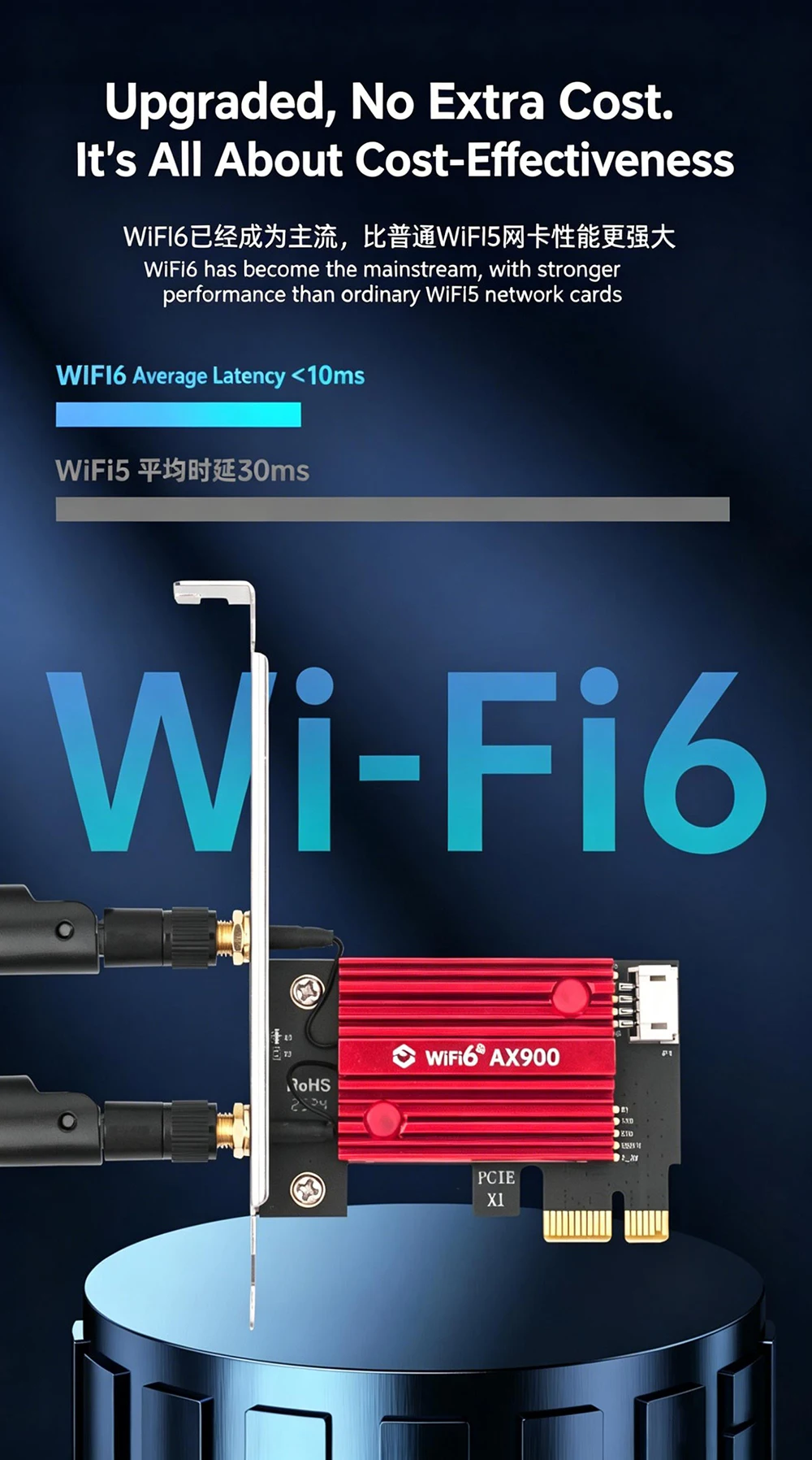 PCIe WiFi 6 AX900 무선 네트워크 카드 – 듀얼밴드 2.4G/5G, 데스크탑 PC용 Bluetooth 5.2