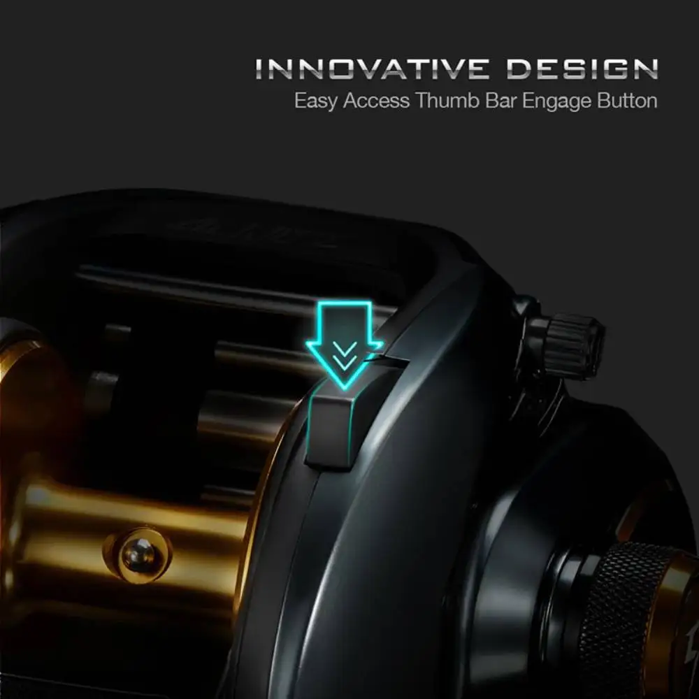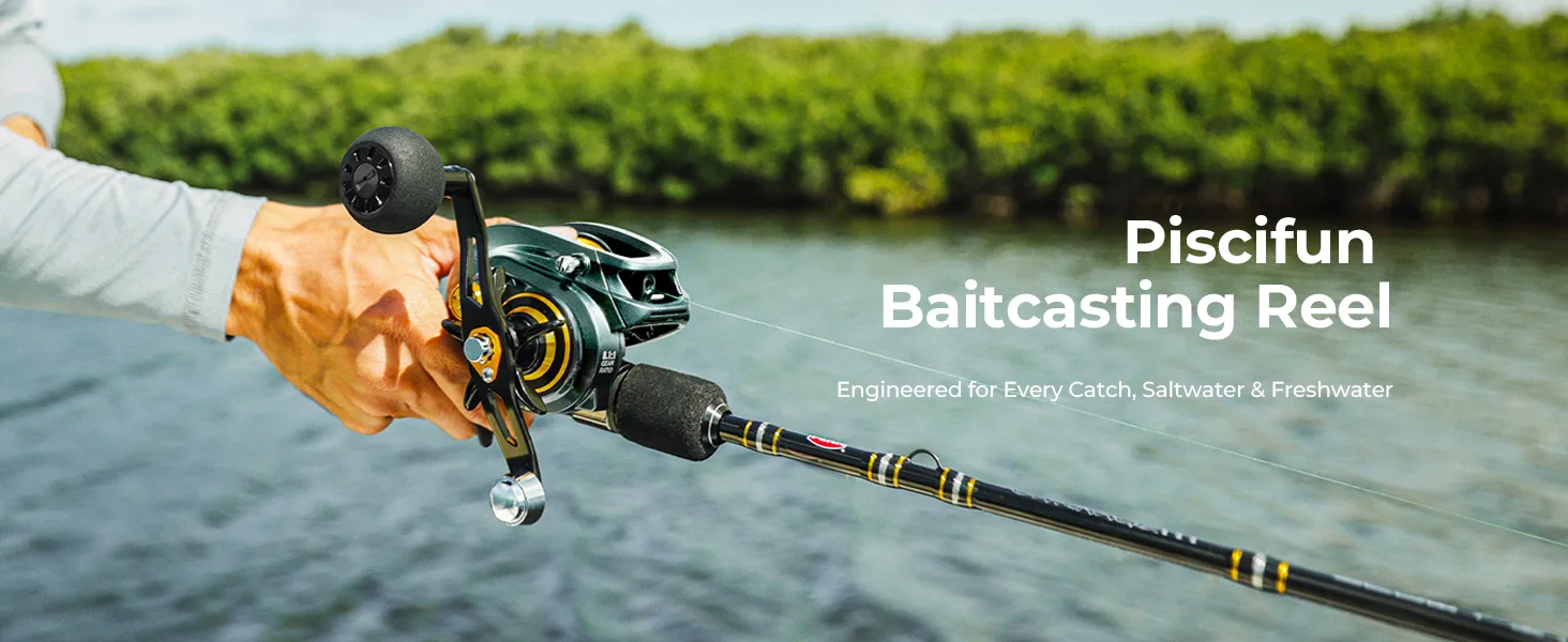 2.[내구성] Piscifun Alijoz 300 사이즈 베이트캐스팅 릴은 프리미엄 알루미늄 프레임과 기어 사이드 플레이트로 설계되어 가장 큰 민물고기를 다룰 수 있는 놀라운 내구성을 제공합니다.
