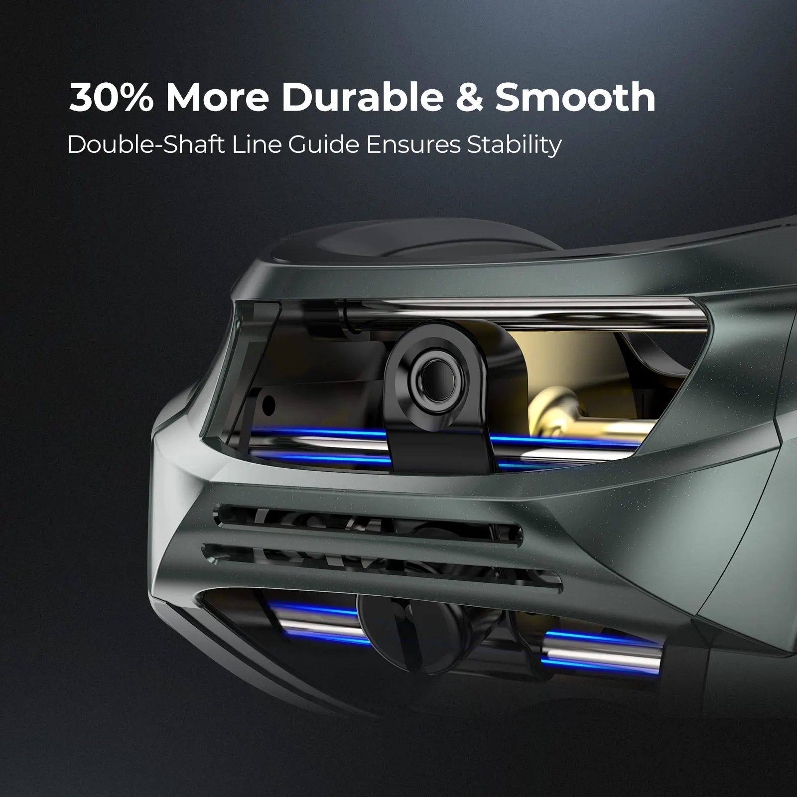 4.[인체공학적 설계 & 촉각 혁신] Piscifun Alijoz 300 베이트캐스팅 릴은 기어 측면 플레이트에 빠른 접근이 가능한 엄지 레버 릴리즈를 통합하여 핸들을 돌리지 않고도 엄지 레버를 한 번에 재설정할 수 있습니다.견고한 라인 와인딩 스풀은 모노 백킹이 필요 없으며, 듀얼 샤프트 지지 라인 가이드 시스템은 회전 안정성과 구조적 완전성을 향상시킵니다.정밀하게 제어되는 8단계 조절식 마그네틱 브레이크 시스템으로 라인 오버런 및 백래시를 최소화하고, 인체공학적 엄지 받침대 패드를 적용하여 장시간 사용에도 손바닥 피로감을 덜어줍니다.