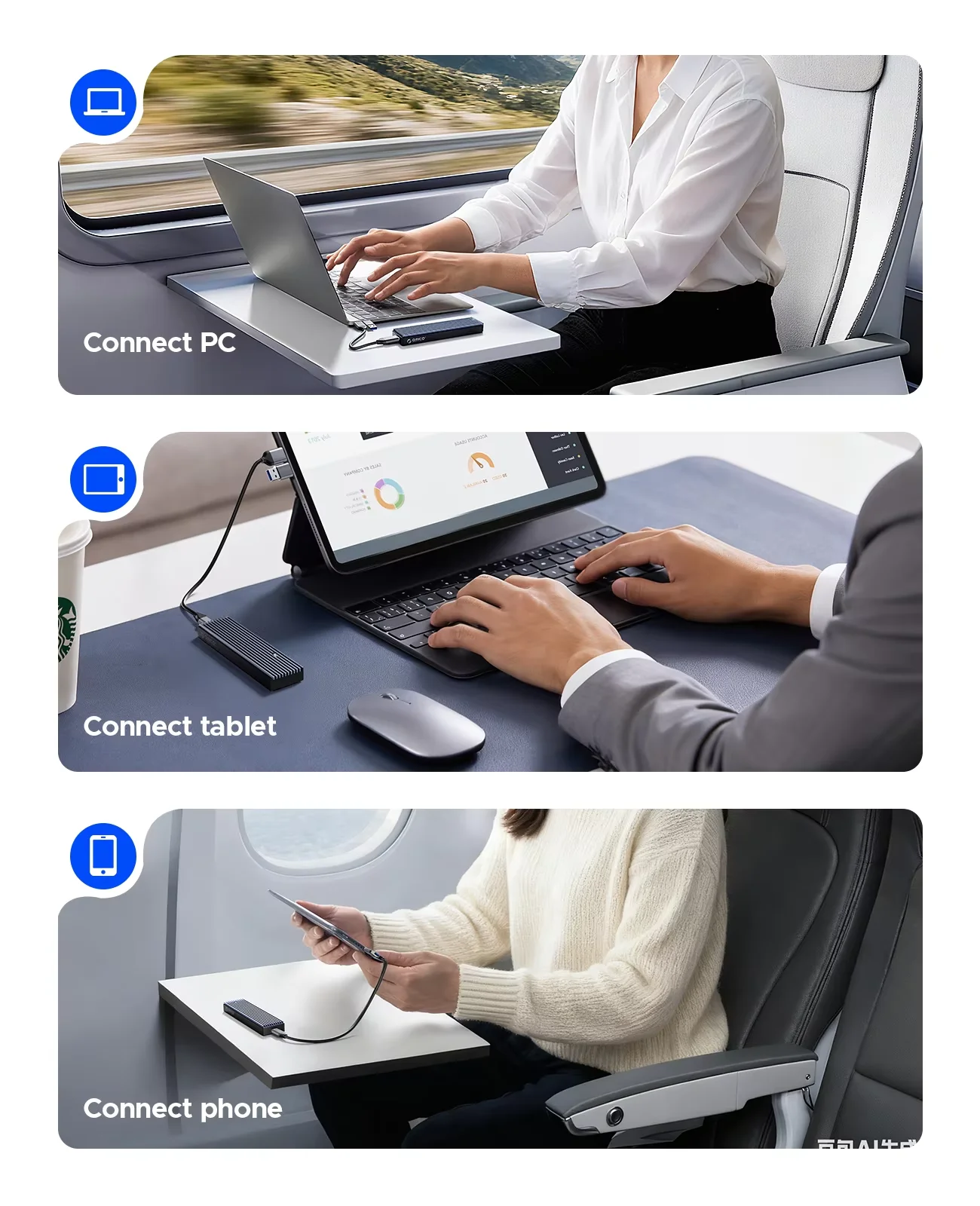 이 USB 데이터 케이블에는 2 개의 출력 포트, USB C-A 및 USB C-C(10Gbps) 가 있으며 컴퓨터, 휴대 전화, 게임 콘솔 및 기타 장치에 마음대로 연결할 수 있습니다. 사용하기에 더 유연하고 안정적이며 수명이 길다.(M.2 SATA SSD 인클로저는 PD60W 충전을 지원하지 않습니다).